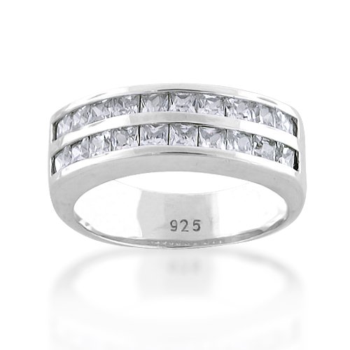 Bling Jewelry Double Row Channel Set Princess-Cut CZ Wedding Band Ring Feature