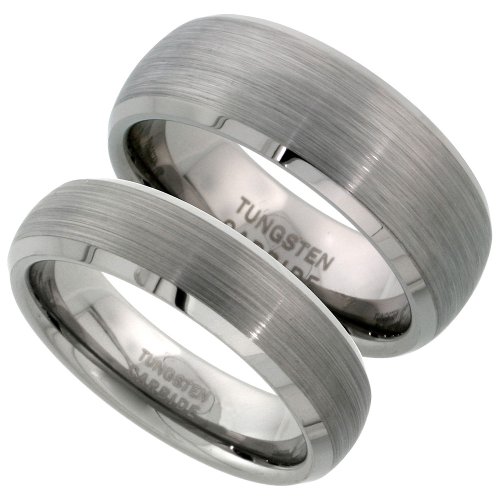 Tungsten Carbide His (8mm) & Hers (6mm) Comfort Fit Dome Wedding Ring Band Set; (Men's Size 7 to 14, Ladies' Size 5 to 12), size 7.5 Review