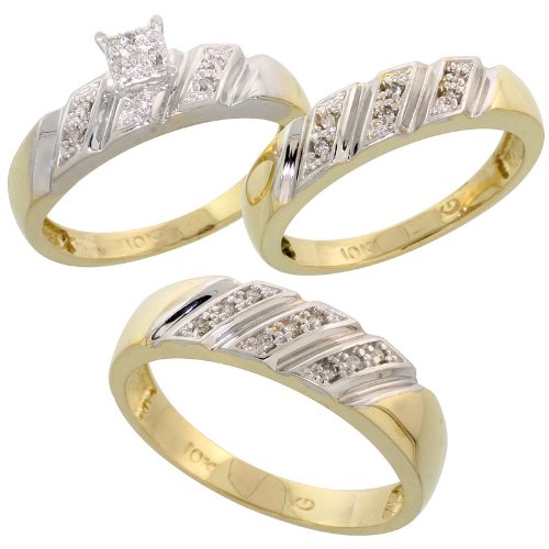 10k Gold 3-Piece Trio His (6mm) & Hers (5mm) Diamond Wedding Band Set w/ Rhodium Accent, w/ 0.15 Carat Brilliant Cut Diamonds; (Ladies Size 5 to10; Men's Size 8 to 14) Review