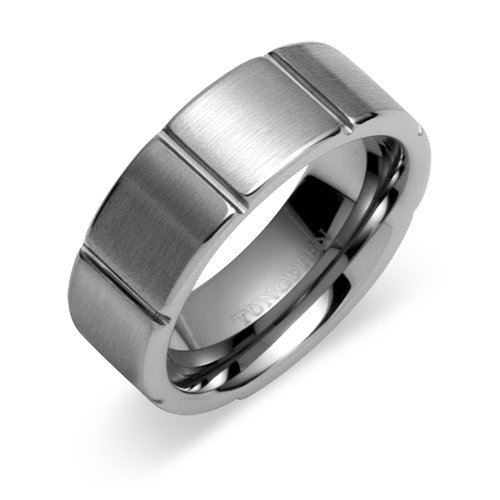 Style: horizontal notch with brush finish, Width: 8mm, Ring Size 9 (available in this size only) MSRP: .99 Imagine wearing a ring that never needs polishing, a ring that is virtually scratch proof. Tungsten carbide rings are the future. With rugged looks and a modern design our Tungsten carbide rings are prefect as a wedding band or as a fashion accessory. Tungsten carbide is 4 times harder than titanium. Rated between 8 and 9 on the Mohs scale the hardest of which is diamond being rated a 10. Tungsten Carbide is so hard it can''t be engraved on, Our diamond tipped engraving machine barely makes a scratch. Completely hypoallergenic our tungsten carbide rings will never turn your finger green or cause irritation to your skin. If you need a durable yet elegant ring this is for you. Includes 100% Money Back Guarantee, Ring Box and FREE SHIPPING!!!