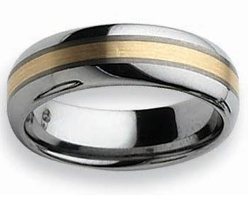 This is a stunning 7mm 14kt Gold Inlay Domed Style Tungsten Carbide Wedding Band with Brushed (Matte) & High Polish Finish in Comfort fit. Our tungsten carbide wedding bands are comfort fit which makes the ring fit more comfortably on the finger. DeBebians is well known for our high quality tungsten wedding rings and wedding bands! Tungsten carbide is two times as hard as steel and four times as hard as titanium. And most importantly, our mens tungsten rings DO NOT contain any cobalt which can lead to oxidation and possible finger irritation.