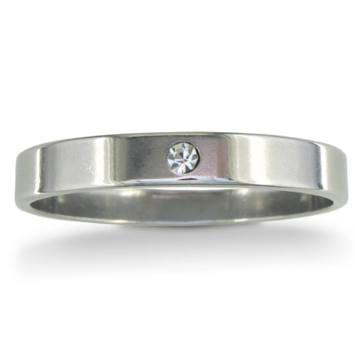 This 4mm stainless steel wedding band features a single fiery CZ stone burnish set. We carry this ring from size 4 to 13. It's simple, elegant and very affordable, making it the perfect choice for those who are planning a wedding on a budget and don't want to sacrifice.